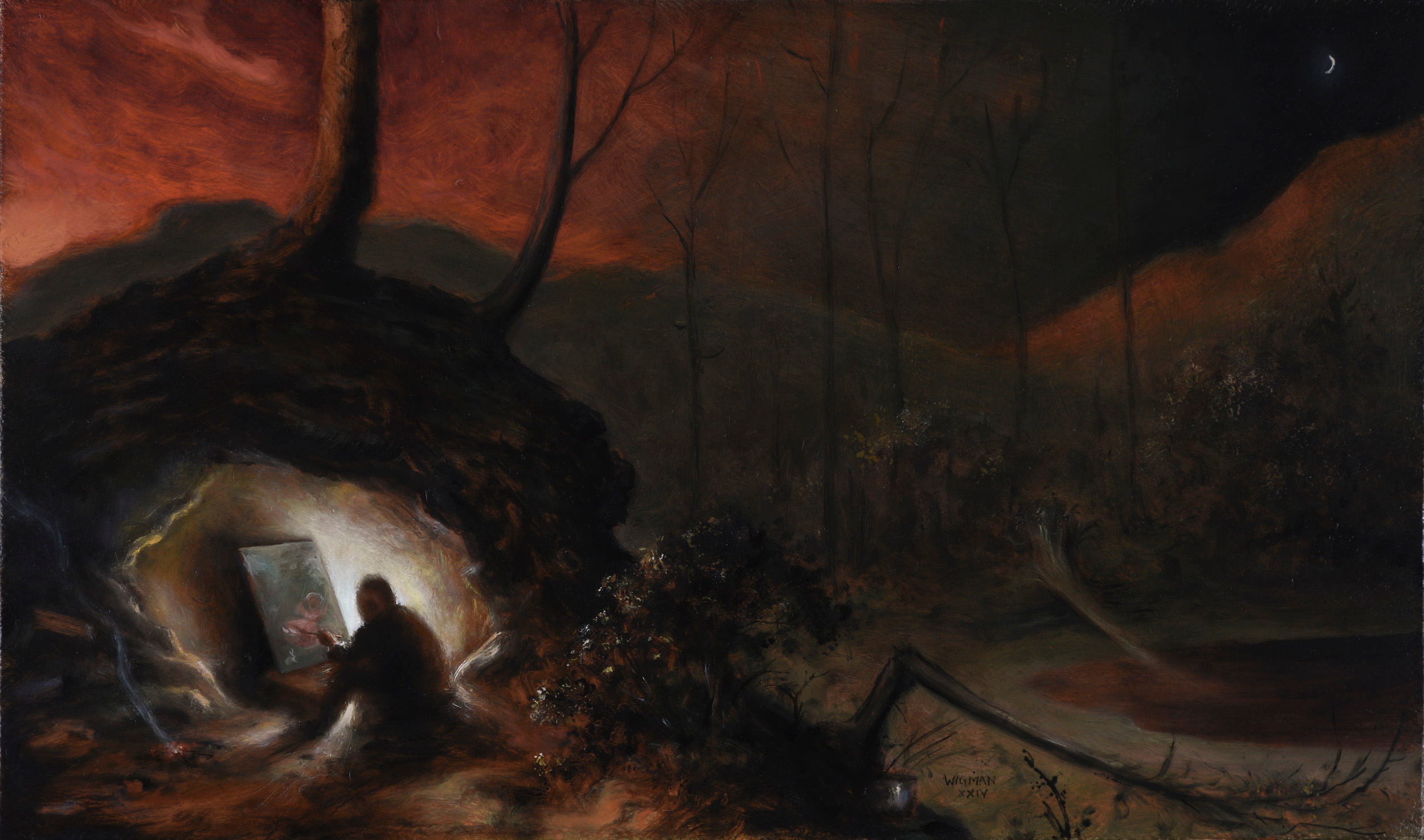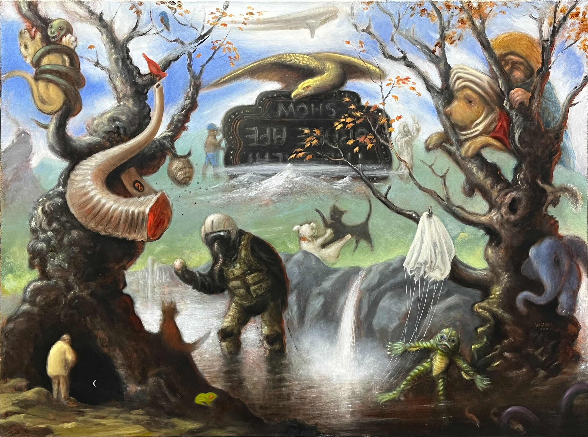gallery 10 – RecentJeff2025-11-14T05:36:06+00:00  (detail) Angels from Heaven, 2025, oil on linen  24 x 20 in. Recent work The recent paintings have had a measured feeling of return. "I was a romantic once" is the caption of a small oil sketch. To the Other Shore 2025oil on panel 14 x 18 in. Lonely Giant 2025oil on linen 26 x 25 in.Done Learnin' 2025oil on panel 16 x 12 in.Hunkering Down 2024oil on linen 12 x 20 in.All Out of Fucks 2025oil on linen 18 x 16 in.Sir Thirsty 2024oil on panel 10.5 x 9 in. Just Like That 2024oil on copper 10 x 8 in.Big Fish Eat Little People (2) 2025oil on panel 17 x 23 in.Angels From Heaven 2025oil on linen 24 x 20 in.Look for the Helpers 2024oil on linen 14 x 18 in.Party of the Sentry 2025oil on linen 28 x 38 in.'nother Life 2024oil on linen 18 x 24 in.Kicking Everyone's Ass 2025oil on panel 18 x 15 in.Men's Regular 2025oil on panel 16 x 12 in.Ready, Fight! 2025oil on panel 16 x 12 in.Cerberus 2025oil on copper 10 x 12 in.Second Base 2025oil on copper 12 x 10 in.Antaeus 2025oil on panel 18 x 14 in.Cyclical Nature 2025oil on panel 12 x 10 in.Long Battle 2022oil on linen 36 x 38 in.Lily Pond 2023oil on linen 15 x 18 in.